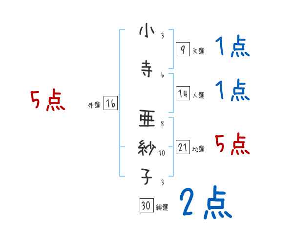 外運![]() | 小寺亜紗子さんの外運は16画の5つ星!人望が厚く大きく発展する。逆転成功が見える。 生活面を象徴する運勢です。外部から受ける影響力を表し、結婚運、家庭運や職場、環境への順応性を表します。 |