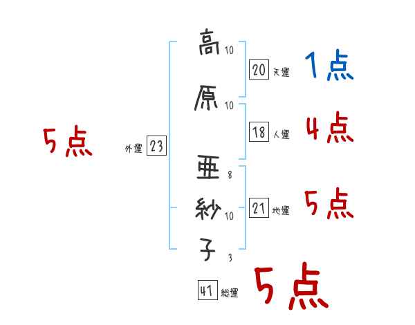 高原亜紗子さんの画数の鑑定結果