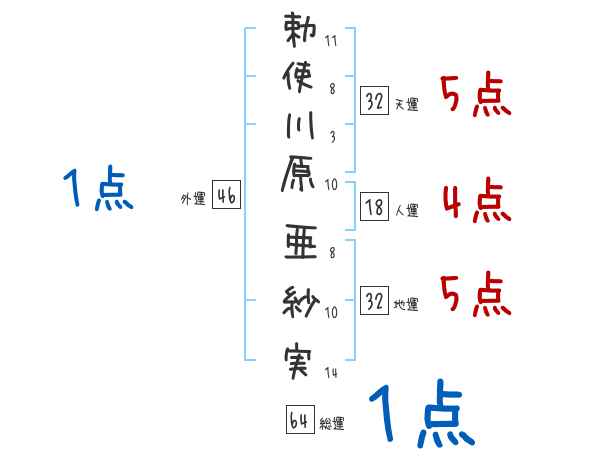 天運![]() | 勅使川原亜紗実さんの天運は32画の5つ星!柔軟性があり成功する。チャンスが多く金運が良い。 家系が持つ宿命的な運勢を表します。祖先から受け継いだ苗字ですので自分の力が及びません。家柄を象徴します。 |