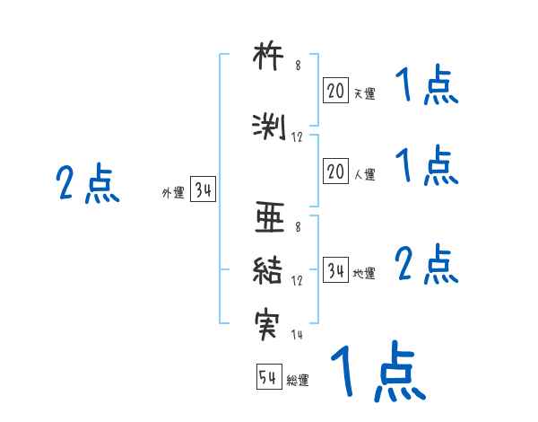 外運![]() | 杵渕亜結実さんの外運は34画の2つ星!独創性に優れるが、自尊心が強く災難に注意しましょう。 生活面を象徴する運勢です。外部から受ける影響力を表し、結婚運、家庭運や職場、環境への順応性を表します。 |