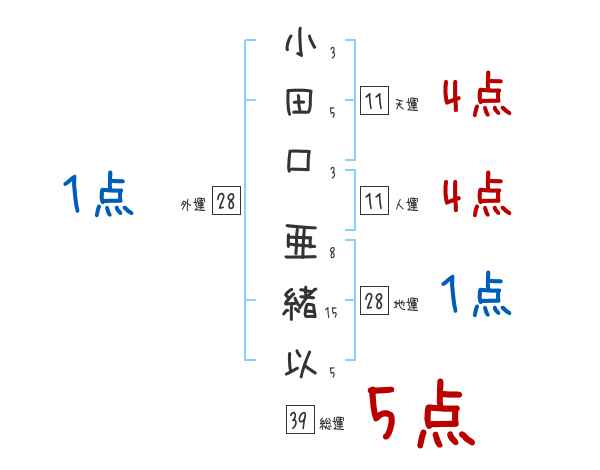外運![]() | 小田口亜緒以さんの外運は28画の1つ星!家庭環境に注意。スポーツで活躍できる能力があるかも。 生活面を象徴する運勢です。外部から受ける影響力を表し、結婚運、家庭運や職場、環境への順応性を表します。 |