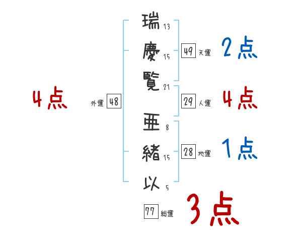 瑞慶覧亜緒以さんの画数の鑑定結果