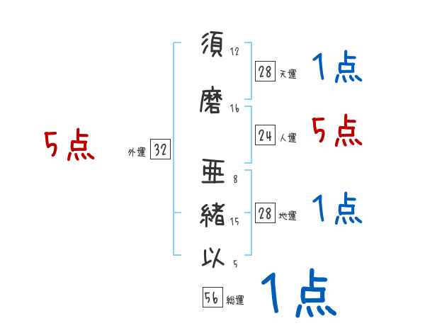 須磨亜緒以さんの画数の鑑定結果