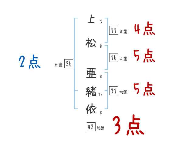 上松亜緒依さんの画数の鑑定結果