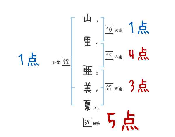 天運![]() | 山里亜美夏さんの天運は10画の1つ星!不安を感じやすい傾向。ストレスを抱えないように注意しましょう。 家系が持つ宿命的な運勢を表します。祖先から受け継いだ苗字ですので自分の力が及びません。家柄を象徴します。 |