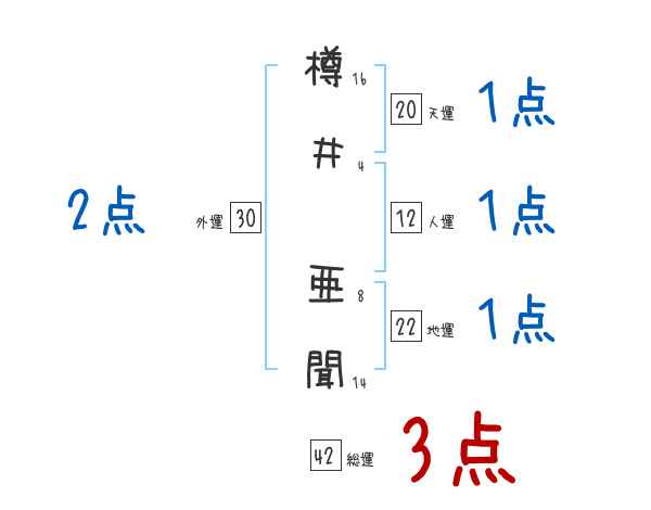 樽井亜聞さんの画数の鑑定結果