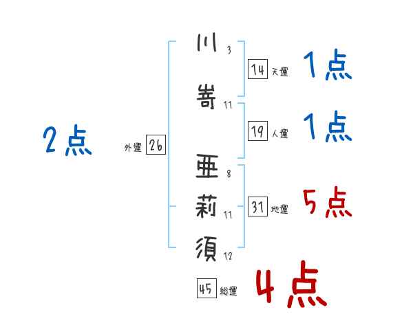川嵜亜莉須さんの画数の鑑定結果
