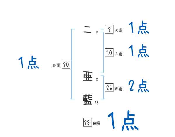 天運![]() | 二亜藍さんの天運は2画の1つ星!優しいですが積極性や意思の強さに欠ける傾向があります。家庭環境の乱れに注意しましょう。 家系が持つ宿命的な運勢を表します。祖先から受け継いだ苗字ですので自分の力が及びません。家柄を象徴します。 |