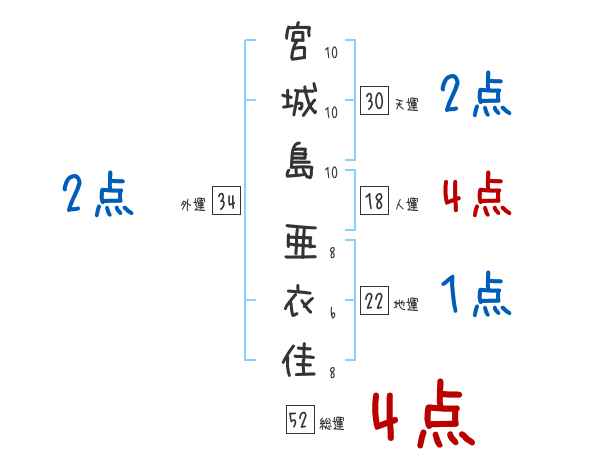 宮城島亜衣佳さんの画数の鑑定結果