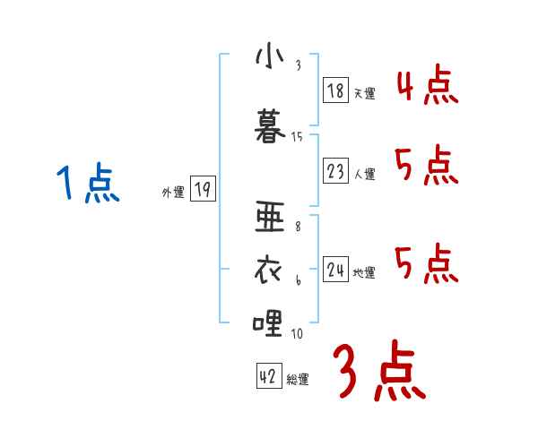 小暮亜衣哩さんの画数の鑑定結果