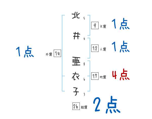 北井亜衣子さんの画数の鑑定結果