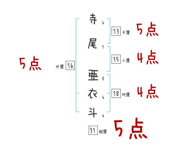 寺尾亜衣斗さんの画数の鑑定結果