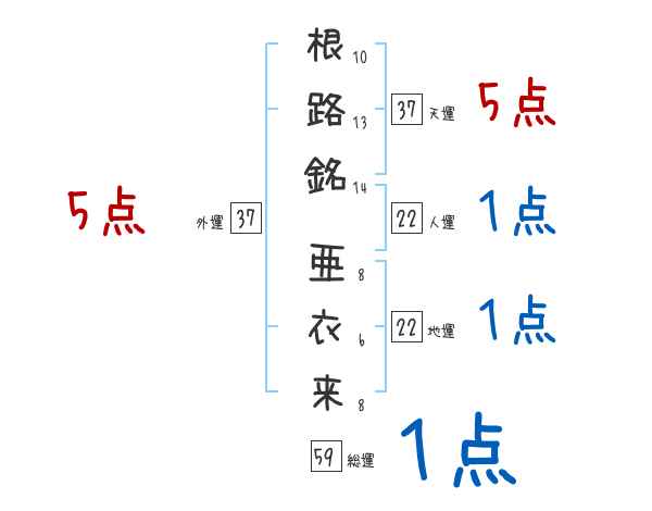 根路銘亜衣来さんの画数の鑑定結果