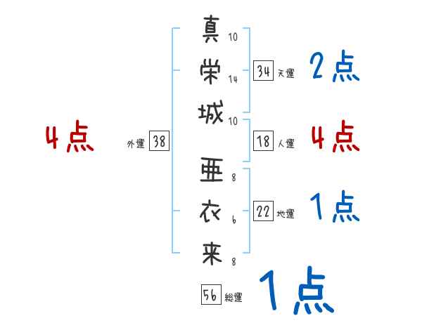 真栄城亜衣来さんの画数の鑑定結果