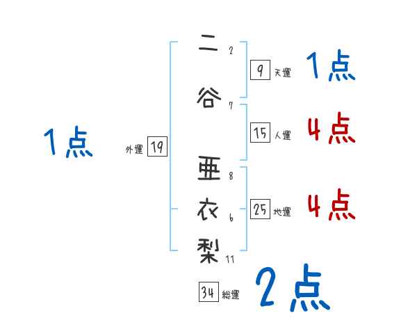 二谷亜衣梨さんの画数の鑑定結果