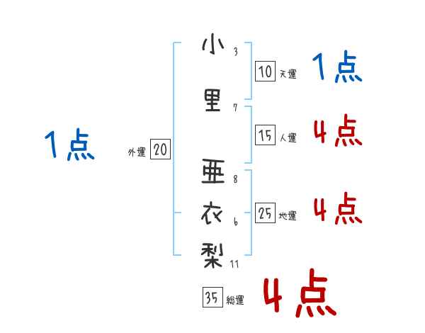 小里亜衣梨さんの画数の鑑定結果