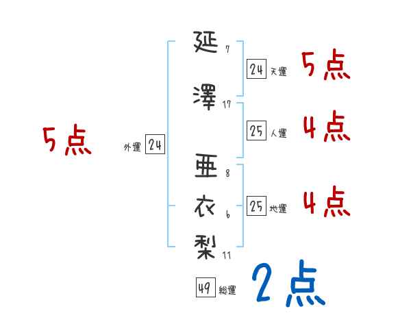 延澤亜衣梨さんの画数の鑑定結果