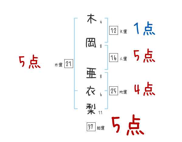 外運![]() | 木岡亜衣梨さんの外運は21画の5つ星!統率力がある。独立し成功する。名誉を手に入れる。 生活面を象徴する運勢です。外部から受ける影響力を表し、結婚運、家庭運や職場、環境への順応性を表します。 |