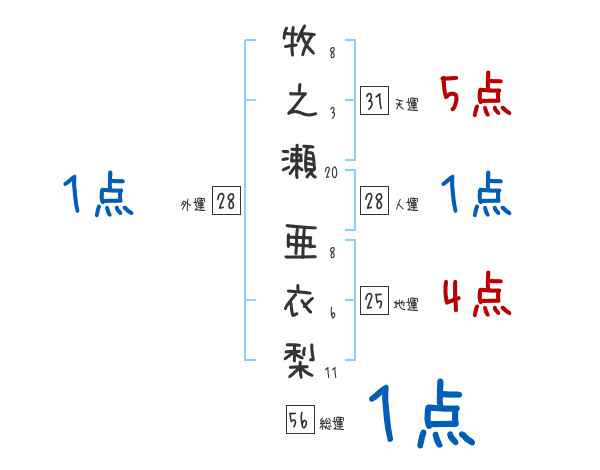牧之瀬亜衣梨さんの画数の鑑定結果