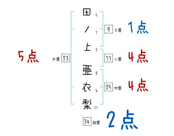 田ノ上亜衣梨さんの画数の鑑定結果