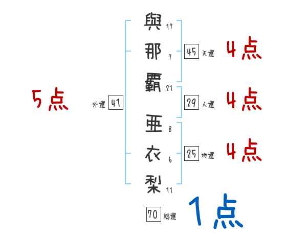 與那覇亜衣梨さんの画数の鑑定結果