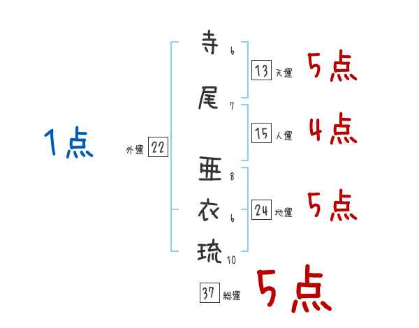 寺尾亜衣琉さんの画数の鑑定結果
