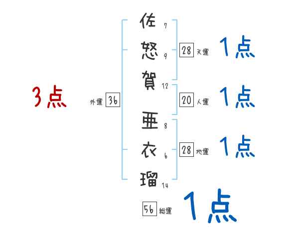 佐怒賀亜衣瑠さんの画数の鑑定結果