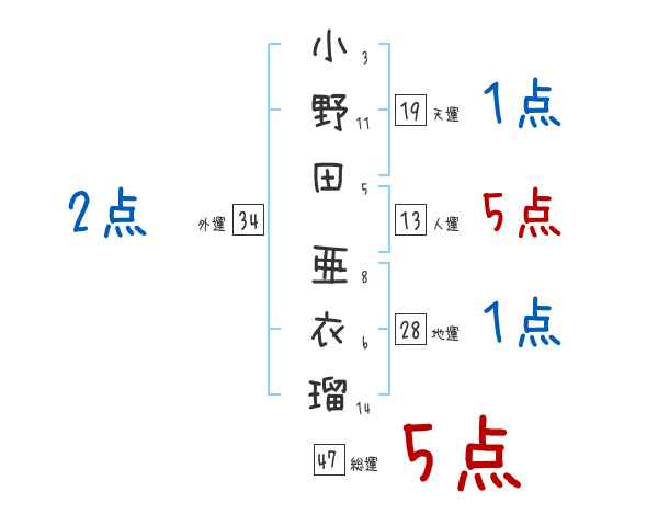 総運![]() | 小野田亜衣瑠さんの総運は47画の5つ星!実力が開花し発展する円満な人生。財に恵まれる。 あなたの人生を表す1番重要な運勢です。生涯を通じて影響する総合運となり、主に50歳以降の晩年期に影響を及ぼします。 |