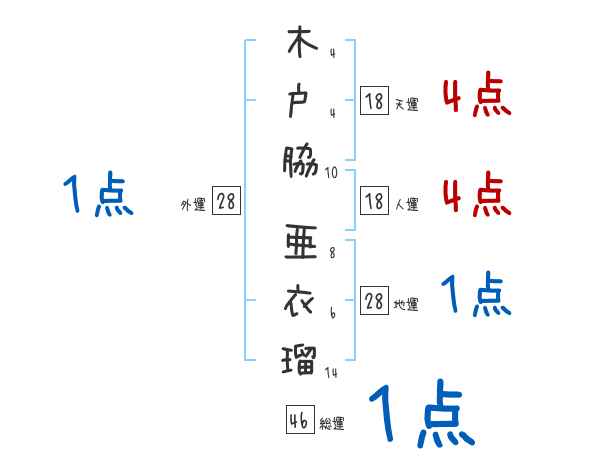 木戸脇亜衣瑠さんの画数の鑑定結果