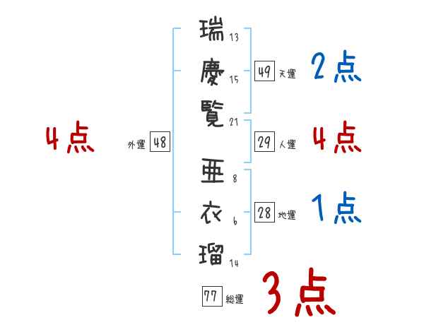 瑞慶覧亜衣瑠さんの画数の鑑定結果