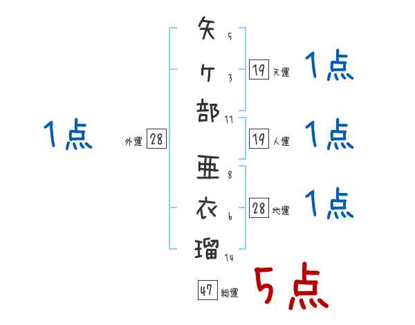 矢ヶ部亜衣瑠さんの画数の鑑定結果