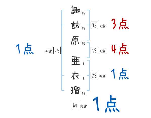 諏訪原亜衣瑠さんの画数の鑑定結果