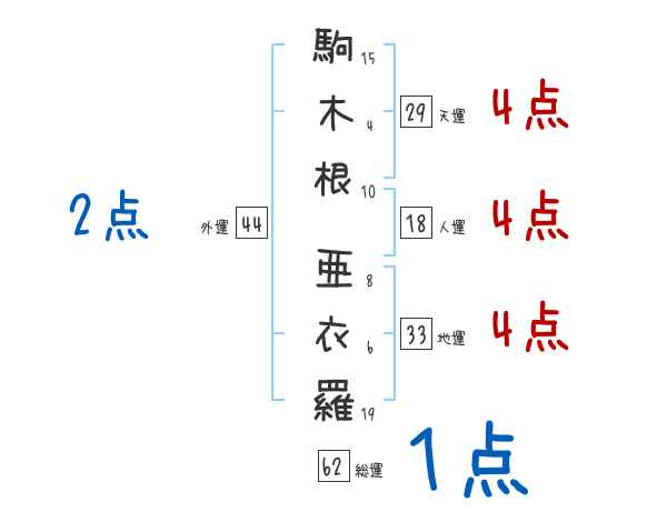 駒木根亜衣羅さんの画数の鑑定結果