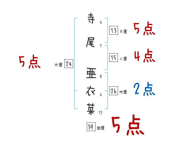寺尾亜衣菜さんの画数の鑑定結果