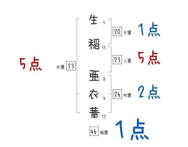 生稲亜衣華さんの画数の鑑定結果