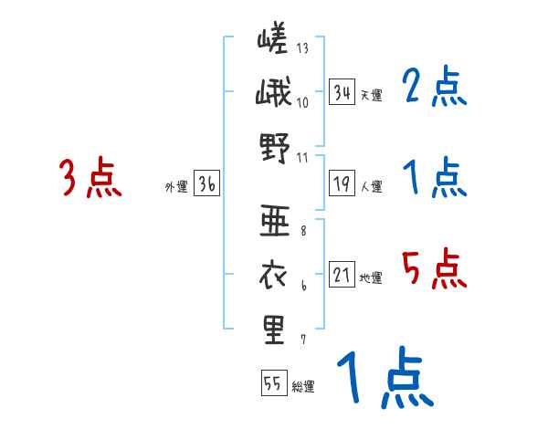 嵯峨野亜衣里さんの画数の鑑定結果