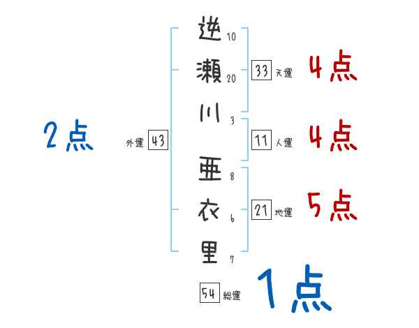 逆瀬川亜衣里さんの画数の鑑定結果