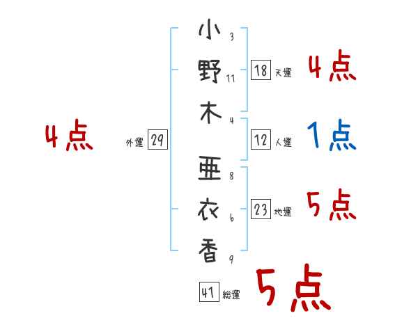 小野木亜衣香さんの画数の鑑定結果