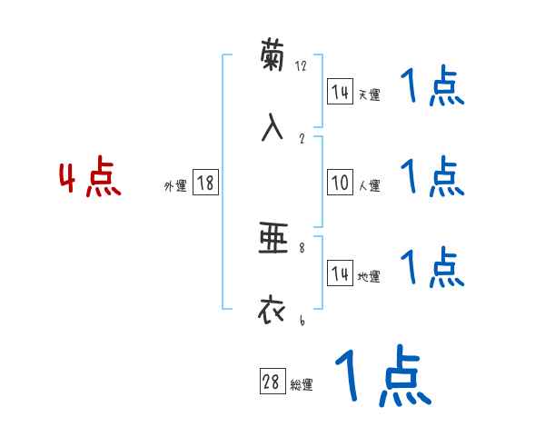 天運![]() | 菊入亜衣さんの天運は14画の1つ星!人に対して優しいがストレスを溜め込みがち。人間関係のトラブルを避けるよう気をつけましょう。 家系が持つ宿命的な運勢を表します。祖先から受け継いだ苗字ですので自分の力が及びません。家柄を象徴します。 |