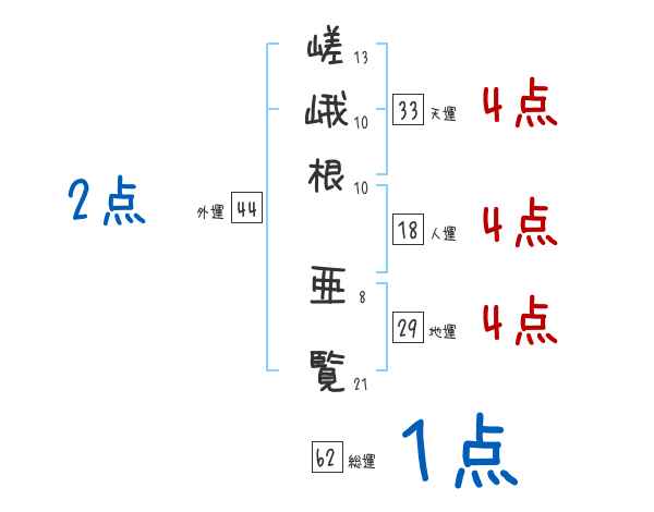 嵯峨根亜覧さんの画数の鑑定結果