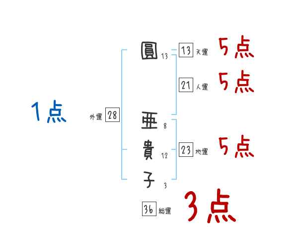 圓亜貴子さんの画数の鑑定結果