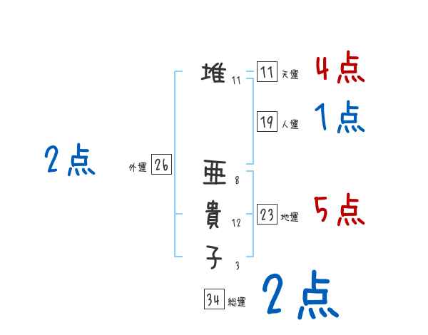 堆亜貴子さんの画数の鑑定結果