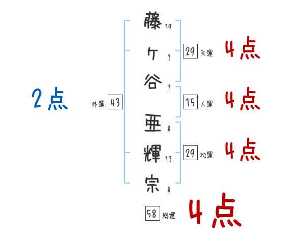 藤ヶ谷亜輝宗さんの画数の鑑定結果