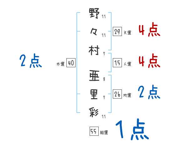 野々村亜里彩さんの画数の鑑定結果