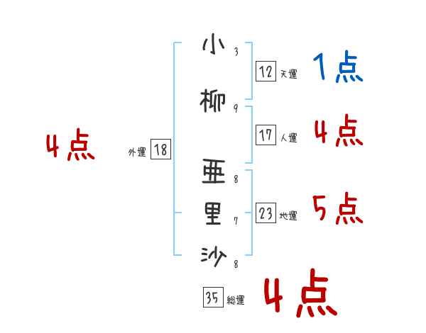 小柳亜里沙さんの画数の鑑定結果