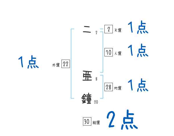 二亜鐘さんの画数の鑑定結果