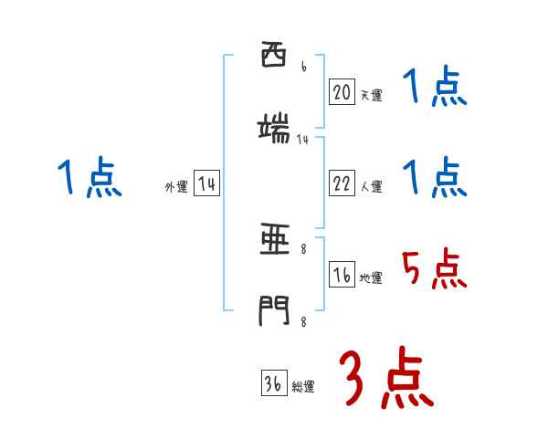 西端亜門さんの画数の鑑定結果