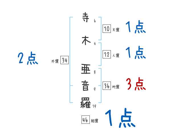 寺木亜音羅さんの画数の鑑定結果