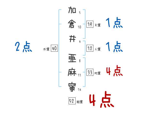 外運![]() | 加倉井亜麻寧さんの外運は40画の2つ星!自信過剰で物事に固執するためトラブルに注意。 生活面を象徴する運勢です。外部から受ける影響力を表し、結婚運、家庭運や職場、環境への順応性を表します。 |