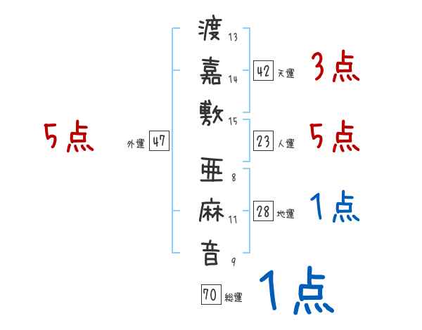 渡嘉敷亜麻音さんの画数の鑑定結果